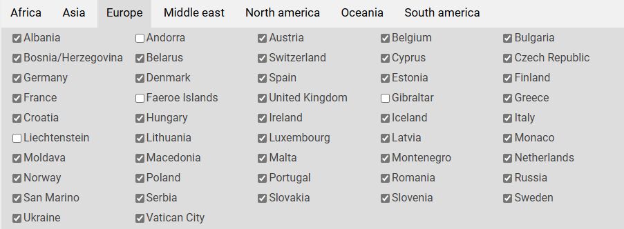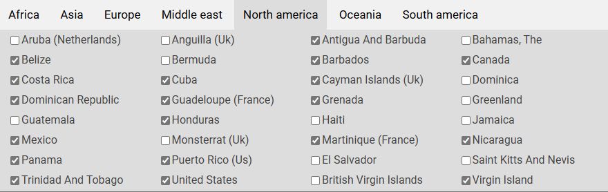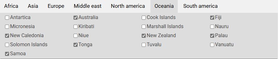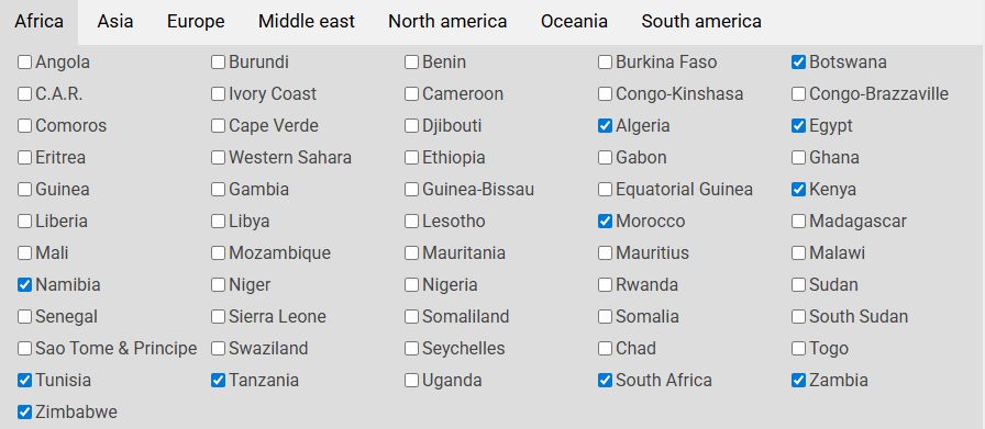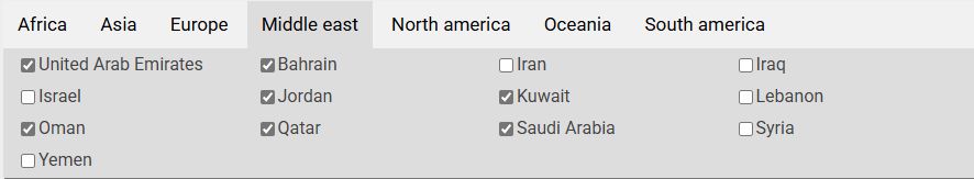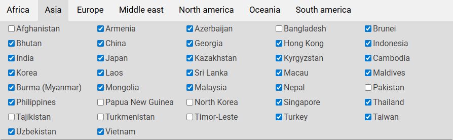 2024年9月新douweosingsの分類に従って、南北アメリカと中東を新設。国や地域を見直す。