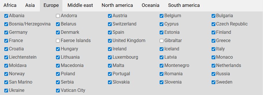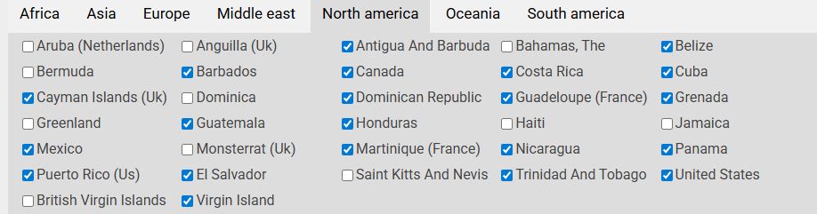 2024年9月新douweosingsの分類に従って、南北アメリカと中東を新設。国や地域を見直す。